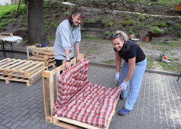 Nízkoprahový klub Budík se bude brzy stěhovat do nových prostor, kde se bude hodit i tento vlastoručně vyrobený nábytek. z palet.