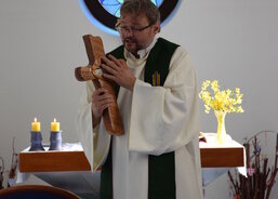 Požehnání novému kříži pro Komunitní centrum Dotek