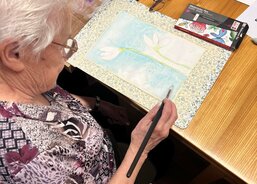 Klientky Domova pokojného stáří si vyzkoušely v Doteku malování akvarelem. Všem se obrazy povedly a měly z nich radost.