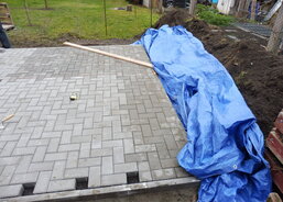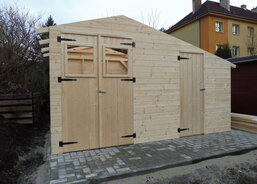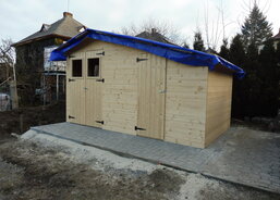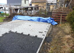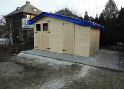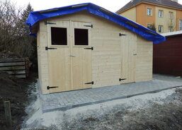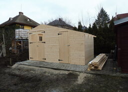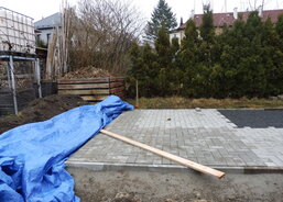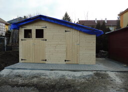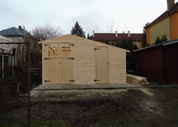Na zahradě Domova sv. Zdislavy pro matky s dětmi v tísni v Klatovech probíhá stavba nového zahradního domku.