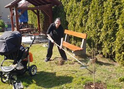 Sluneční paprsky vytáhly maminky s dětmi na zahradu a práce jim šla pěkně od ruky.