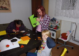 V Domově sv. Zdislavy pro matky s dětmi v tísni v Klatovech se uskutečnilo podzimní vyrábění. Maminky a starší děti si vyrobily papírovou dýni a mladší děti si vybarvily obrázky s podzimní tématikou.