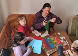 Maminky s dětmi z Azylového domu si v uplynulých březnových dnech vyrobily papírový velikonoční věnec, kterým si ozdobí svůj pokoj. Poslední březnový víkend se maminky s dětmi pustily do pečení beránků, mazanců a barvení vajíček.