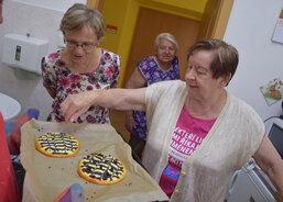 Včera se nesla Domovem pokojného stáří užasná vůně. Klientky, spolu s naší pracovnicí Mirkou Tomšíkovou, se pustily do pečení pouťových koláčů. Dílo se jim podařilo, jsou nejen krásné, ale i velmi chutné.