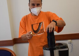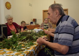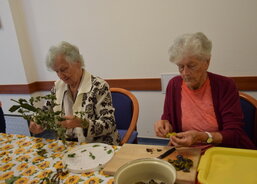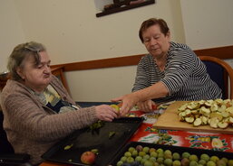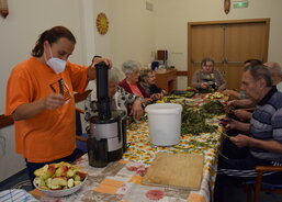 Dnes se klienti sešli, aby společnými silami zpracovali úrodu z naší krásné zahrady. Vařil se mátový sirup, vyráběl se mošt a nechybělo ani pečení švestkového koláče. To vše za dohledu naší pracovnice Mirky.
