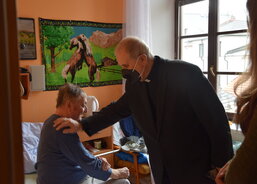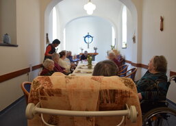 Setkání s emeritním biskupem Radkovským v Domově pokojného stáří