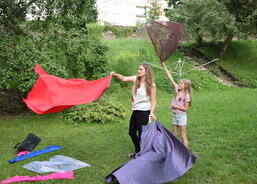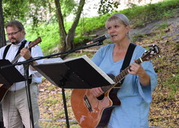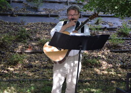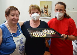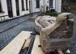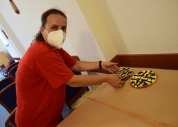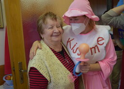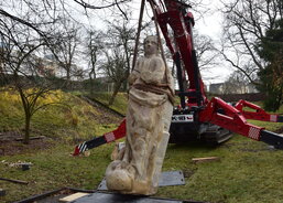 Sázení růží okolo sochy Panny Marie na zahradě DPS