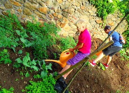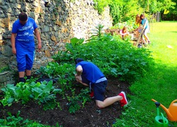 Klub Chapadlo pod vedením naší pracovnice Renaty dostal možnost pěstování na zahradě Domova pokojného stáří. Spolu s dětmi založily několik zeleninových záhonků, ovocných záhonků a pro radost i potěchu oka bylinkový a květinový záhon.